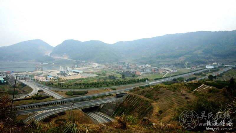 沈海高速公路八尺门收费站,远处住宅群为大白岩吴氏宗亲的移民新居。