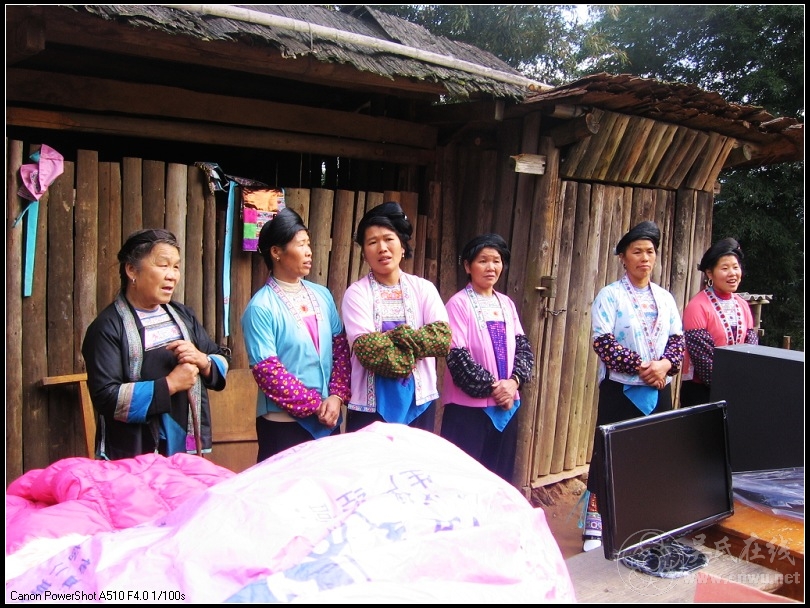 二十公里的山路,车行花了一个半小时,车队在一个拐弯处停了下来。这是一处勉强能会车的小山路,忽然间,从天上传来一阵雄浑玄妙的声音。只听前面传过话来,说是车只能停在这里,前面一点就到了爱心团要去的地方。人们下车步行,仔细辨听着那天簌般的声响,隐约觉得是从左侧松竹林中传来的,象是电影中的竹笙,队伍中有人说,这是村民在吹芦笙,用传统的隆重方式迎接爱心团的到来。五千年文明传承中,礼仪被视为是友谊产生的前导,敦厚的人们出自内心的盛意,往往不善以言语来直接进行表达,声乐集言语与身姿的舞动,把内心的喜悦之情尽意释放在友情的台面。