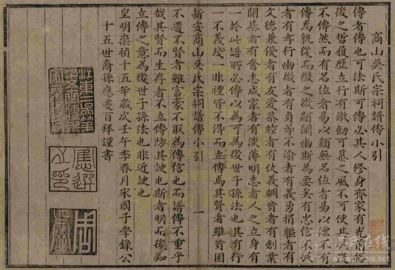 安徽休寧新安商山吳氏宗祠譜傳一卷(一)