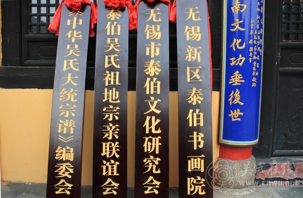 2012年1月30日上午,梅村街道在梅里古都挂牌成立泰伯书画院、泰伯文化研究会、无锡市吴氏宗亲联谊会、大统宗谱编委会。无锡新区人大工委主任黄胜平、新区政协工委主任周青及梅村街道党政、人大、政协领导出席挂牌仪式。