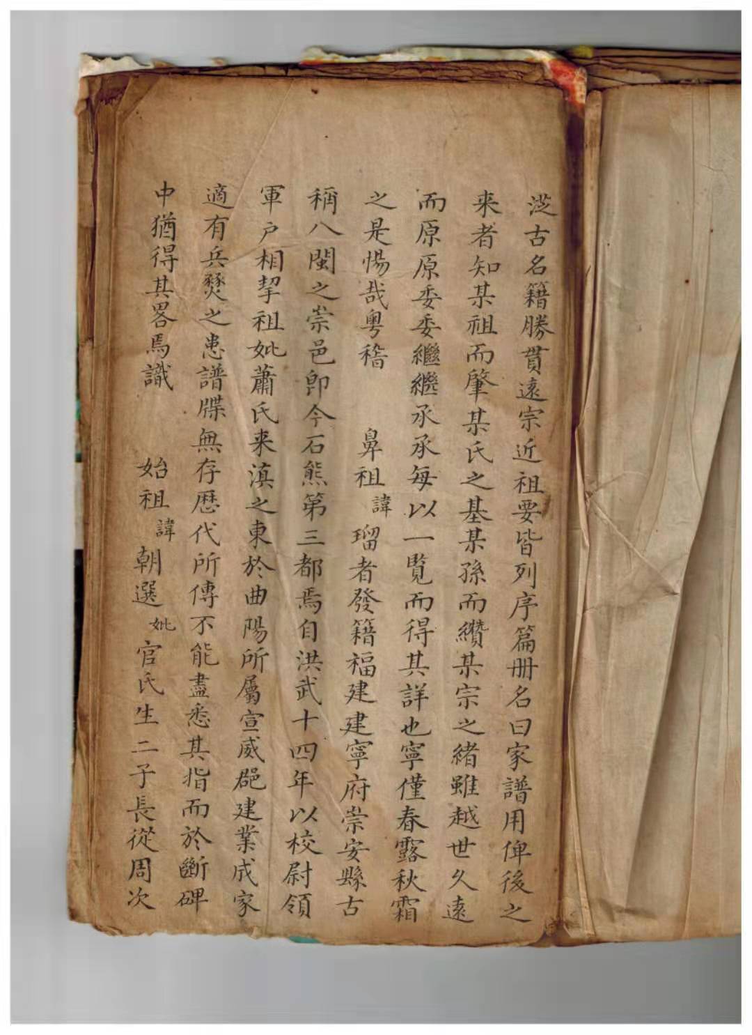 我支系来宣鼻祖吴榴发籍福建建宁府崇安县古称八闽之崇邑即今石熊第三都,于洪武十四年以校尉领军户之职奉旨南征,携眷而来,征南事竣,奏留落籍宛温关,即今宣威建业成家,居宣威上堡街北极楼脚,后仍转回延陵,因兵燹之患,谱牒无存,历代所传不能尽悉所指,而于断碑中略得其略,目前找到最早谱书为清嘉庆二十二年(1817年)推断明洪武至明嘉靖之间有断代,且榴祖上源无法查清。